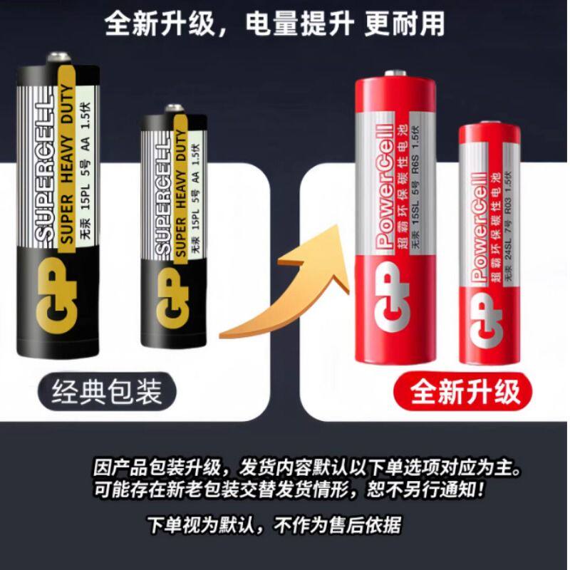 GP超霸5号7号AA碳性儿童玩具电视空调遥控器闹钟1.5V高性能干电池五号七号正品碳性体重秤鼠标键盘家用专用