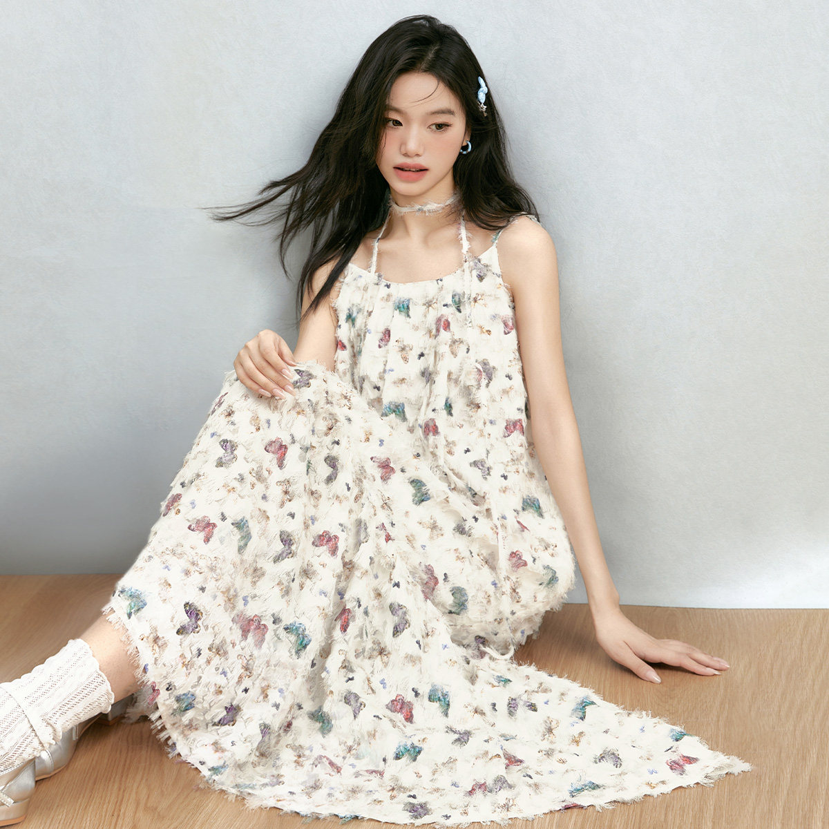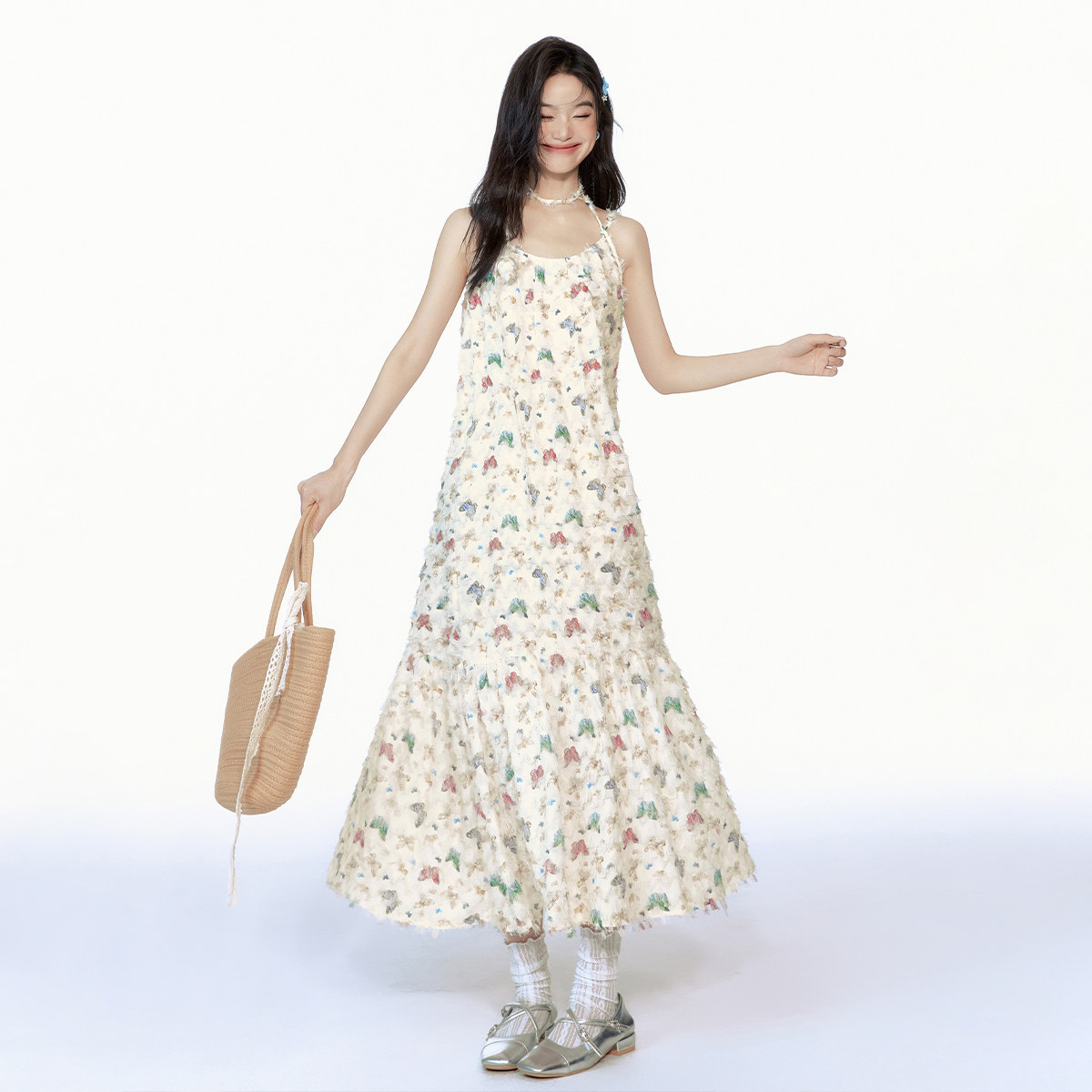 EPTISON吊带连衣裙女2025夏季新款复古甜美碎花小清新气质长裙子
