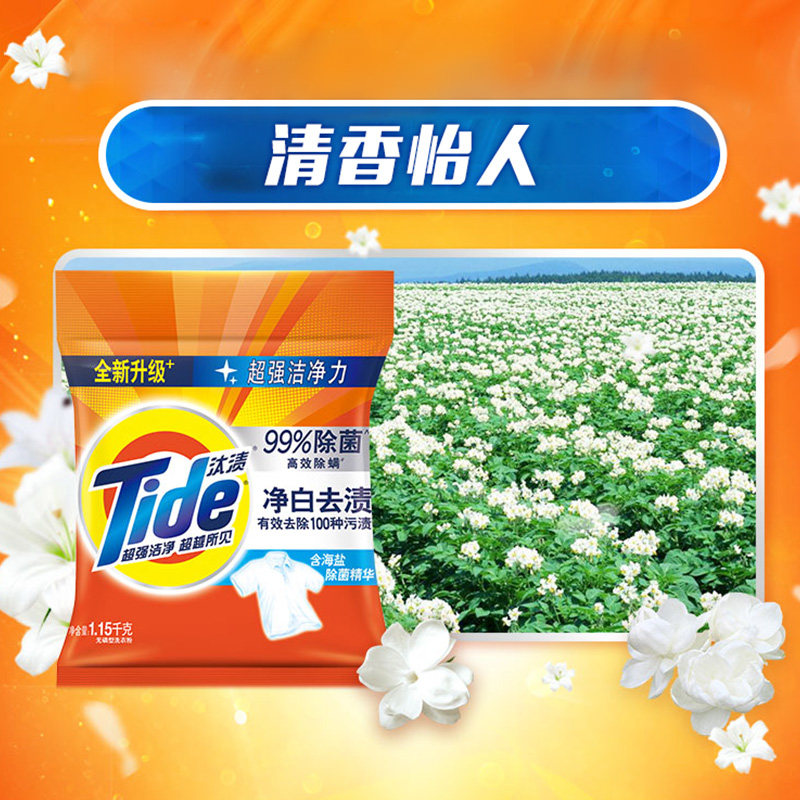 汰渍净白去渍护色柠檬洗衣粉洁雅茉莉洁净薰香家庭装1.15kg1.65kg