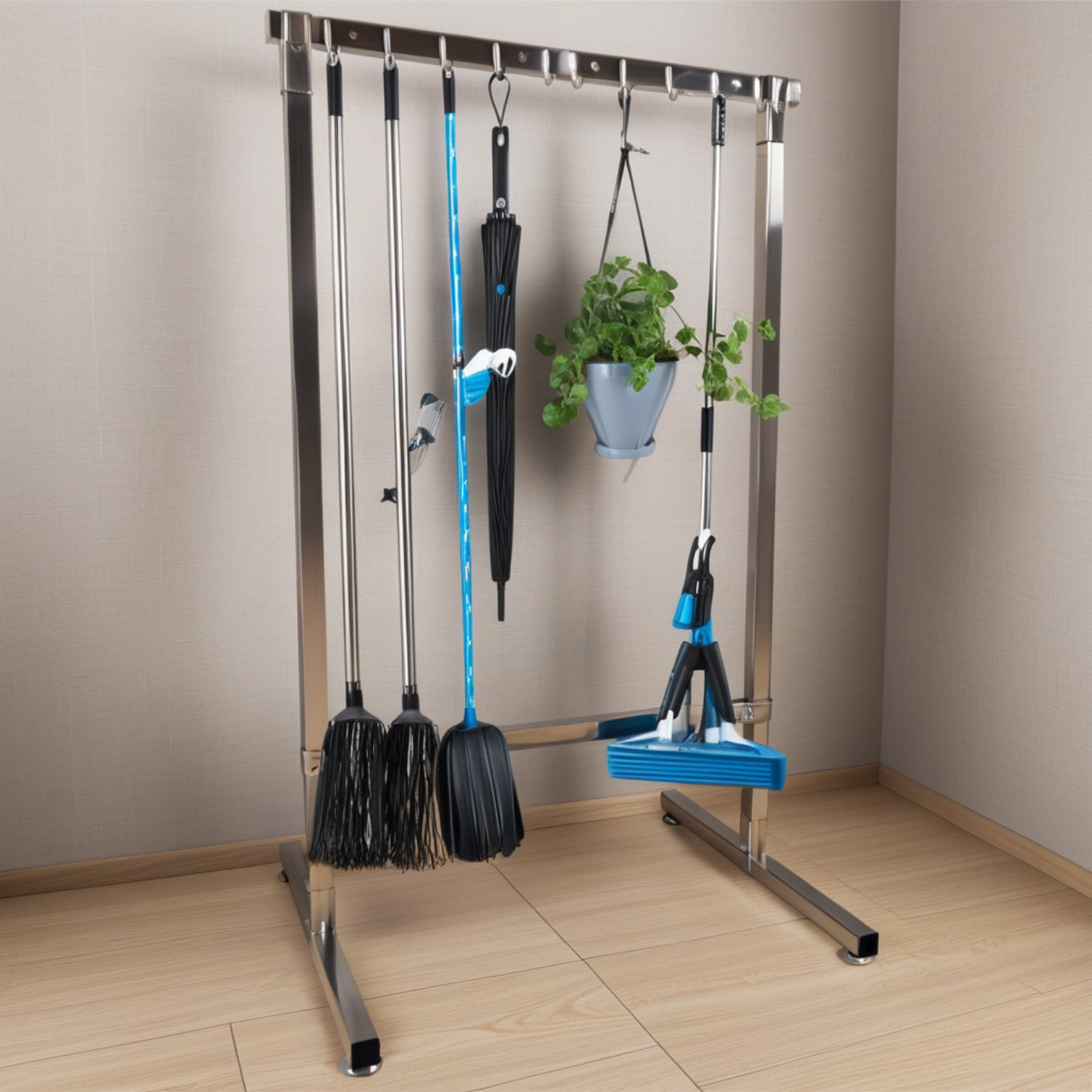 沛晴 食堂收纳挂钩围裙挂拖把架子移动式清洁架抹布钩子挂帽子