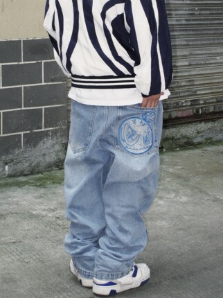 牛仔裤宽松直筒水洗嘻哈大码滑板