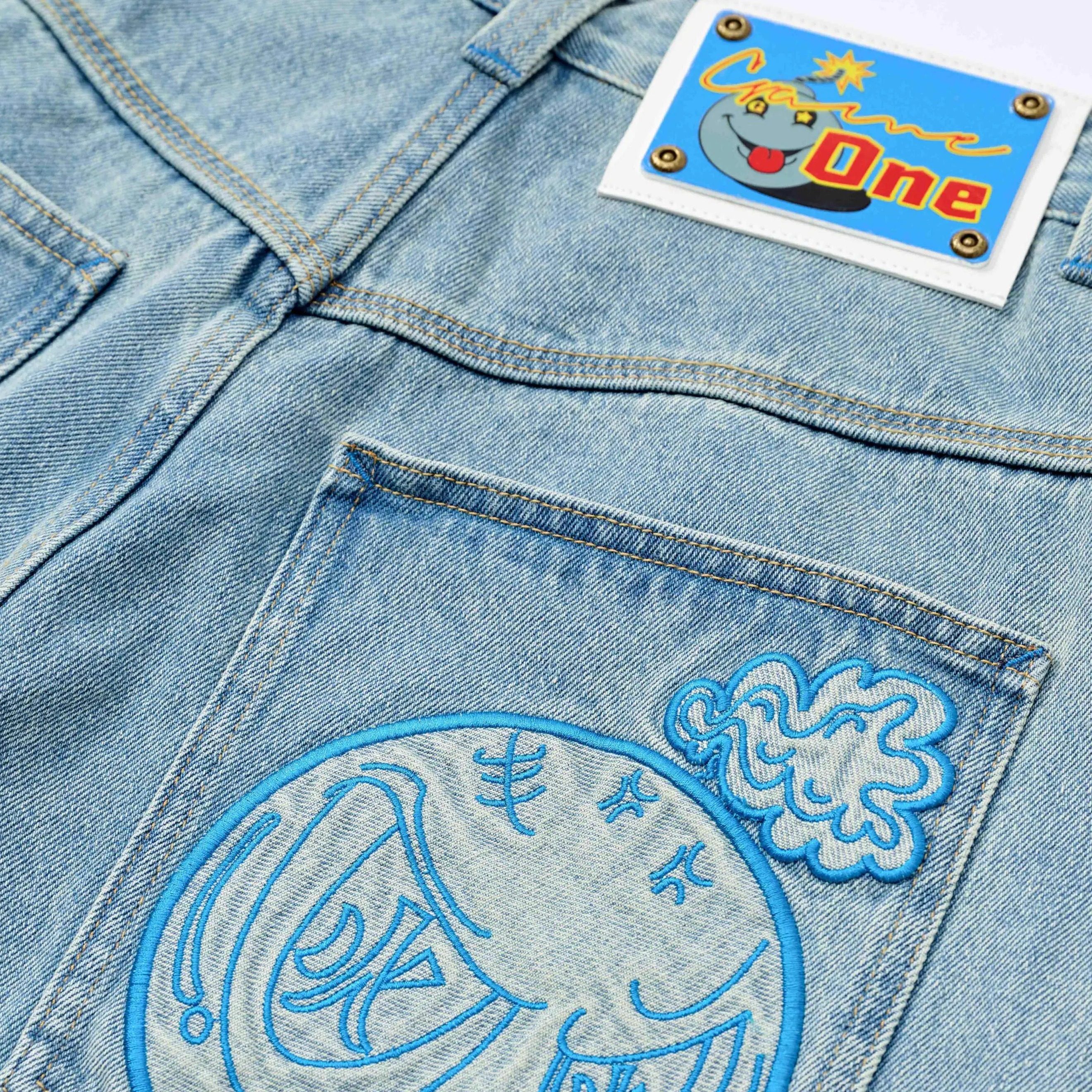 GameOne 23SS“天空炮弹”直筒牛仔裤 水洗宽松嘻哈大码滑板bboy