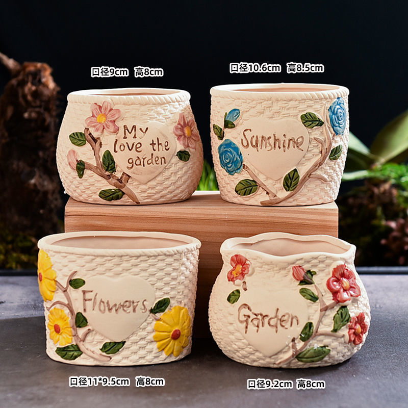 qh花盆大全陶瓷捡漏多肉花盆粗陶素烧复古创意多肉植物小
