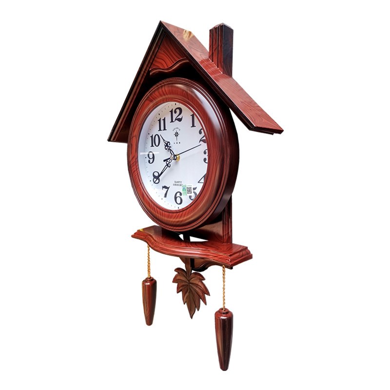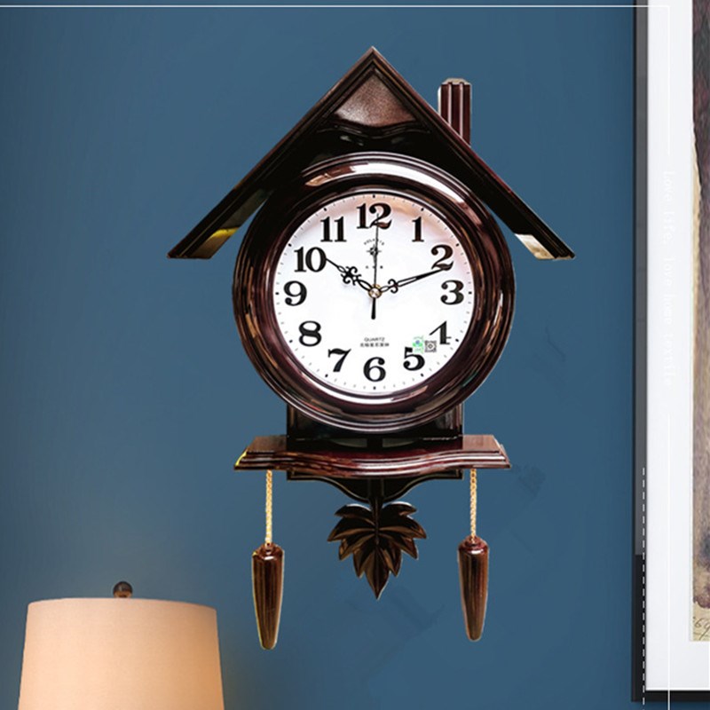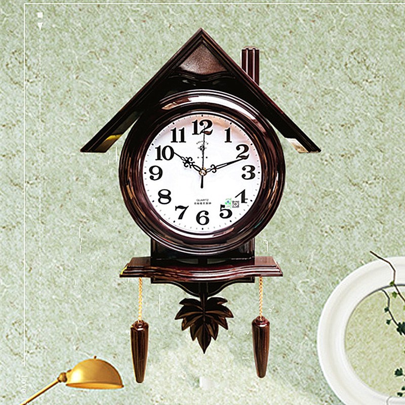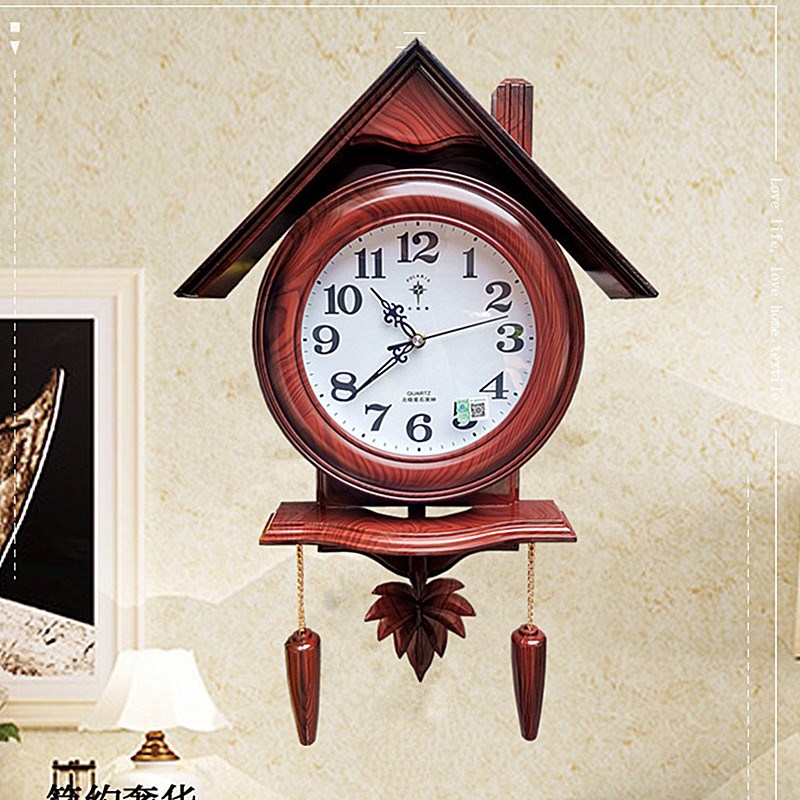 北极星房屋挂钟 时尚田园客厅创意仿木钟表地中海静音摆钟石英钟