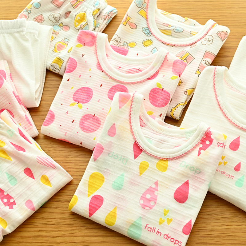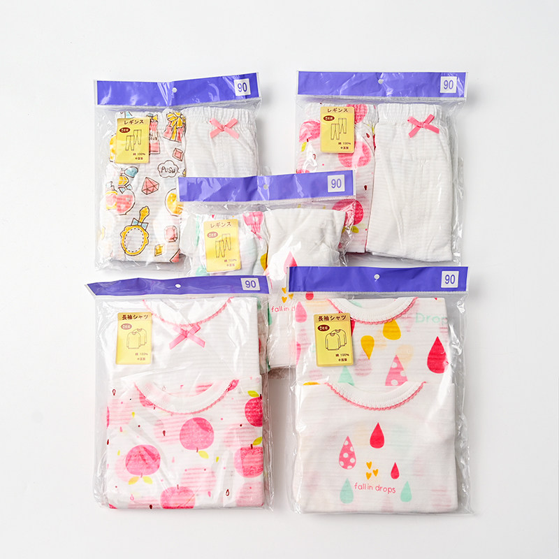 两件装 儿童纯棉竹节棉长袖T恤 女童卡通打底裤 长袖长裤家居服