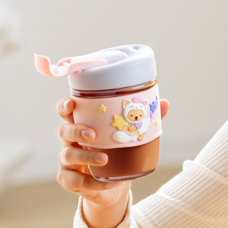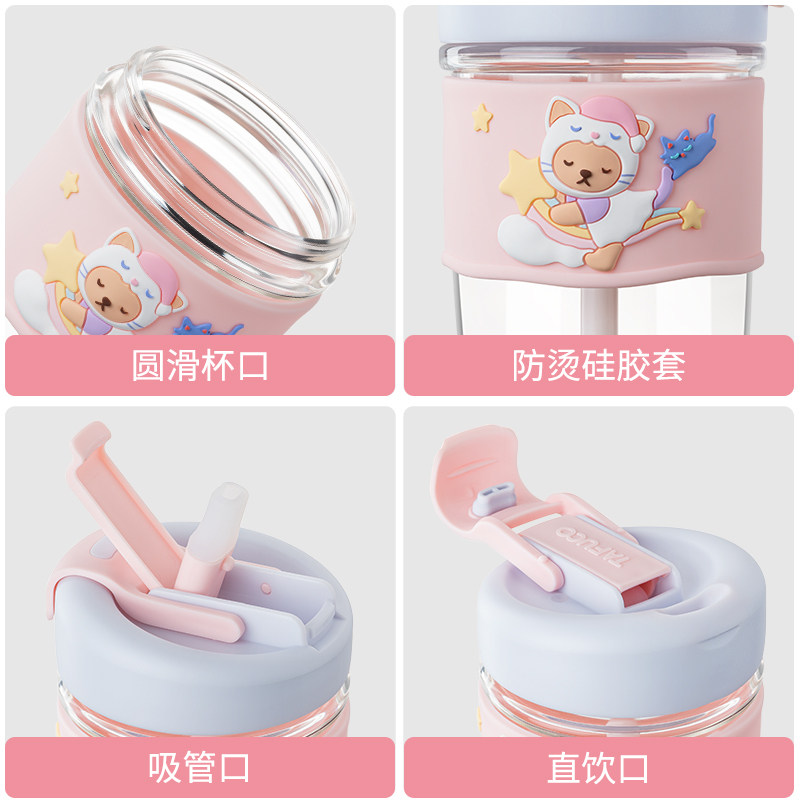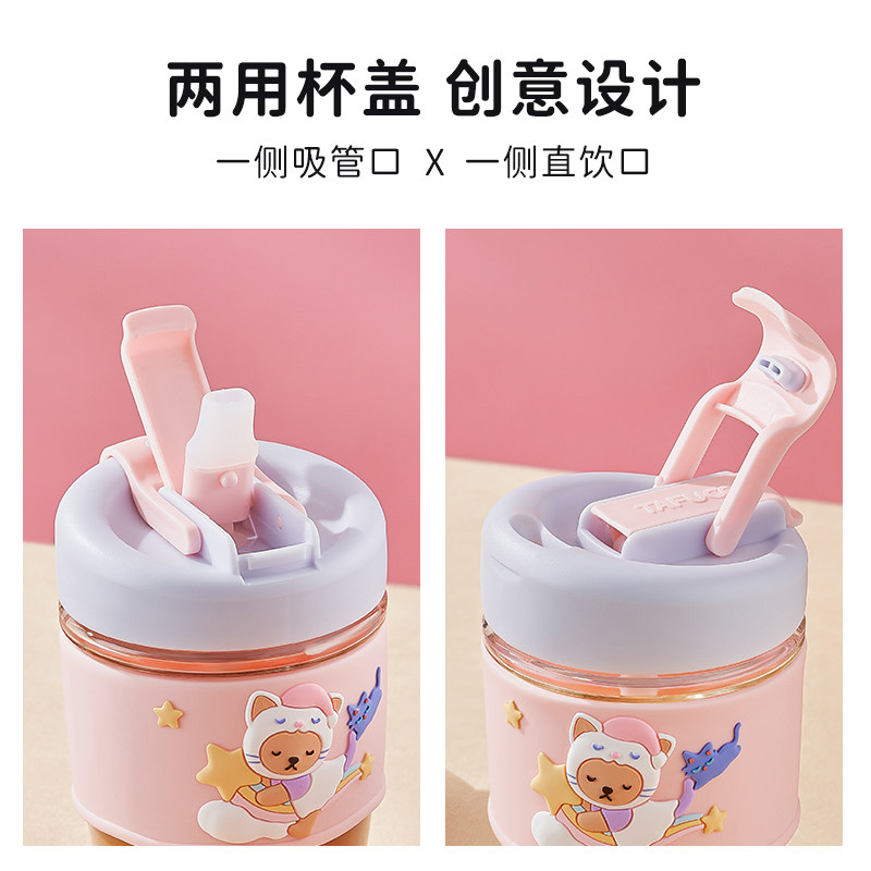 日本泰福高高硼硅玻璃水杯女可爱吸管杯高颜值杯子猫咪咖啡杯双饮