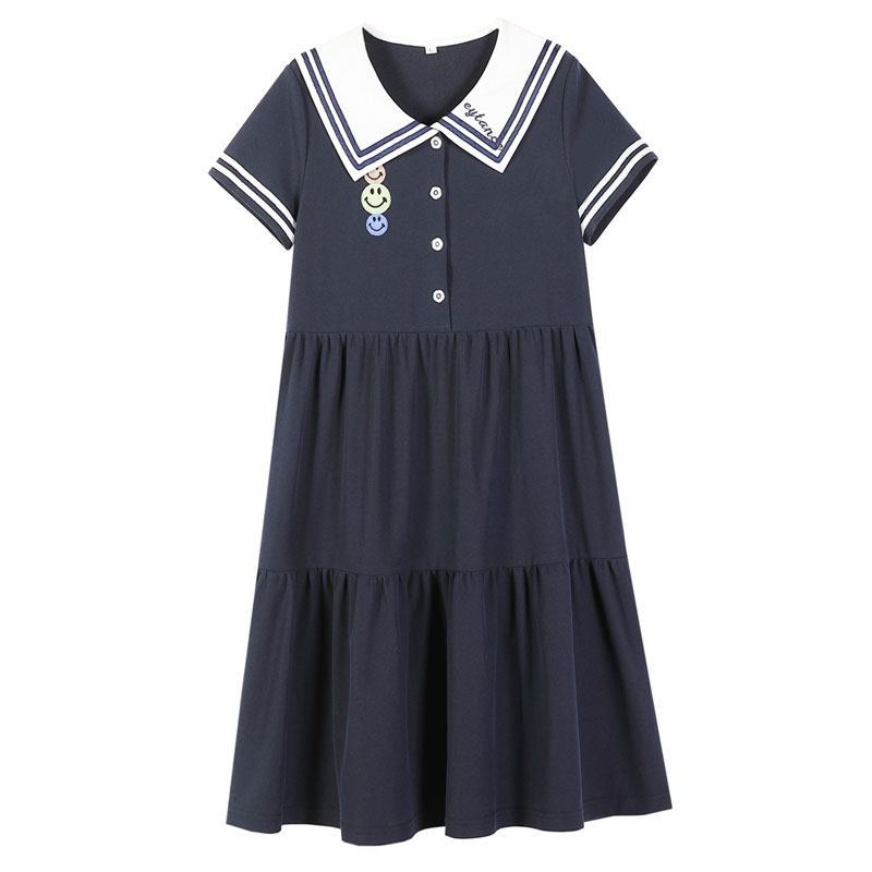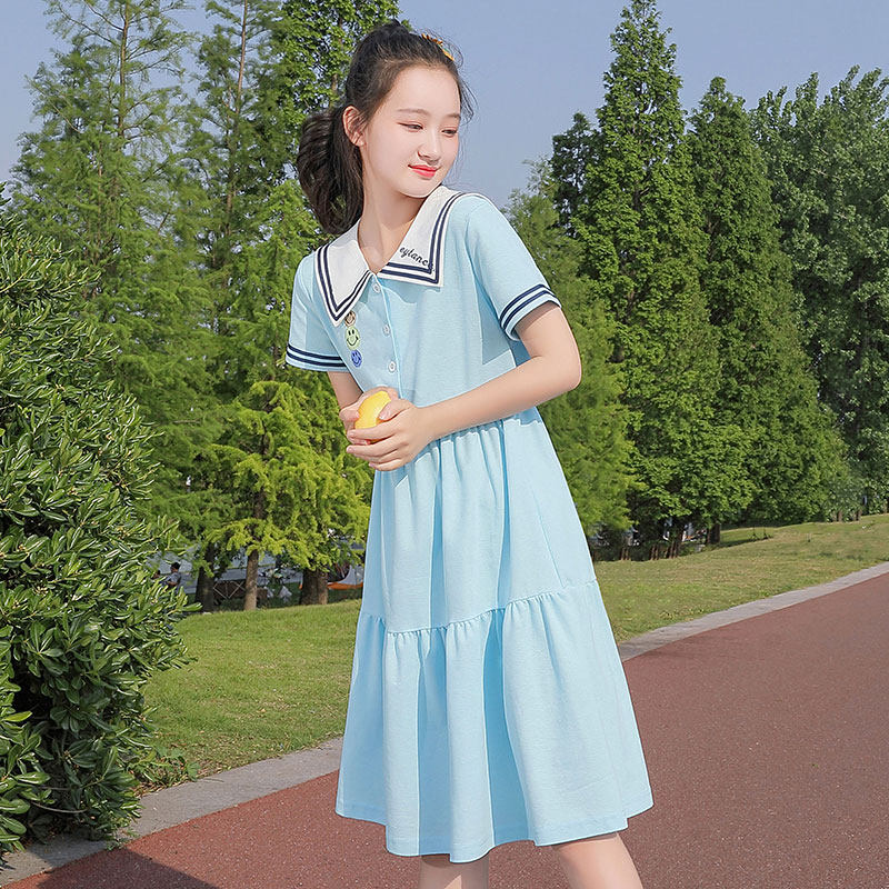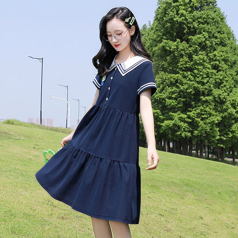中学生连衣裙海军风初中生少女裙子2021年夏季新款夏装海军领高中