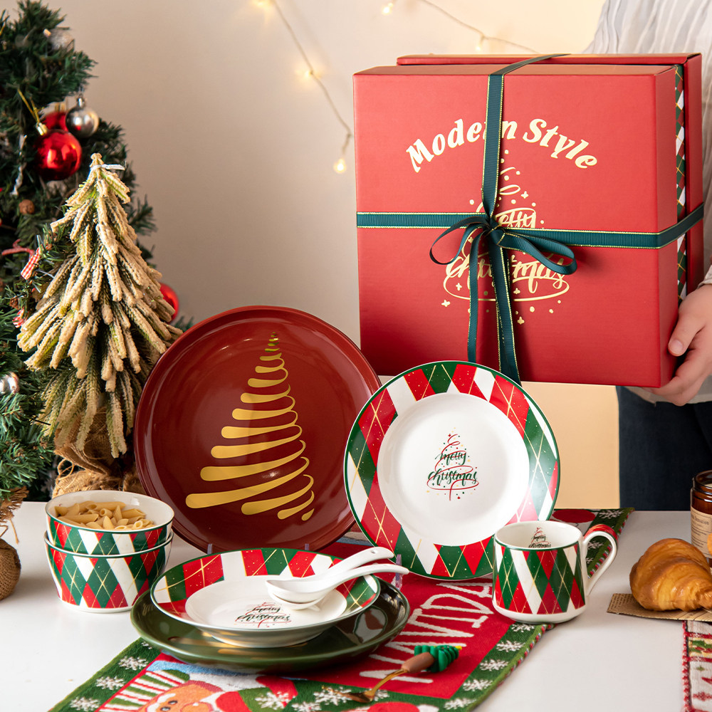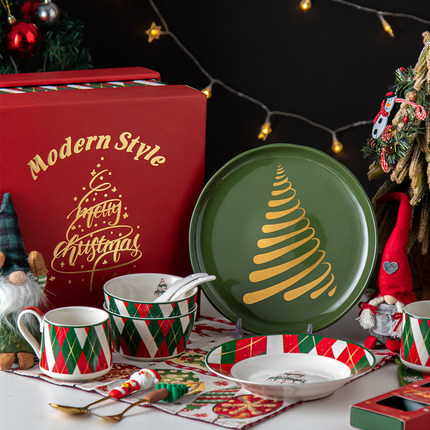 派一摩登家餐具圣诞节杯碟送礼碗盘套装家用盘子马克杯带勺礼盒装