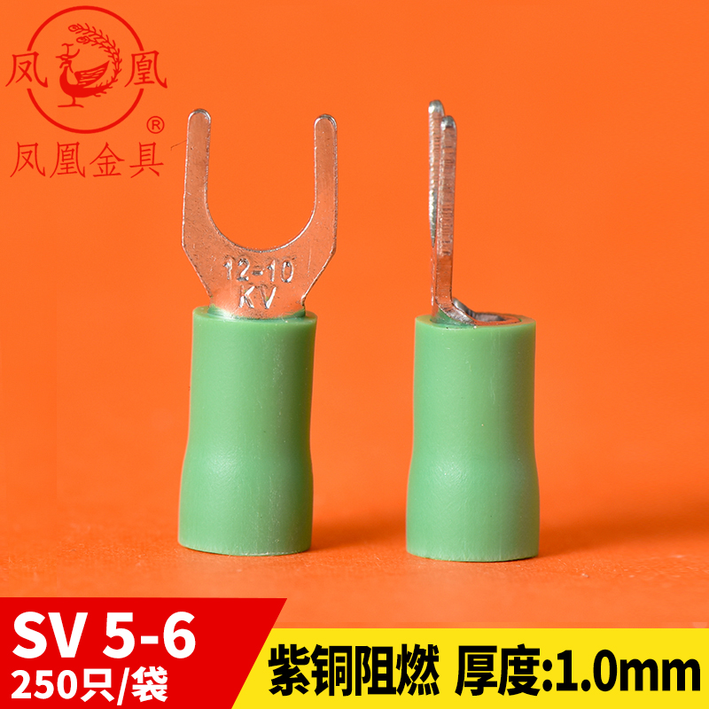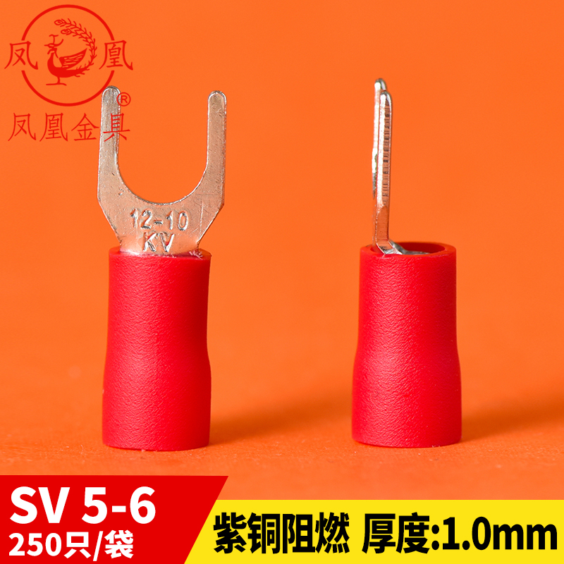 凤凰 冷压叉形预绝缘端头 SV5.5-6叉型接线端子厚1MM 250只