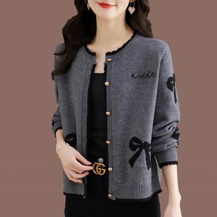 羊毛衫女2025春秋季短款宽松大码针织开衫小香风外搭披肩毛衣外套