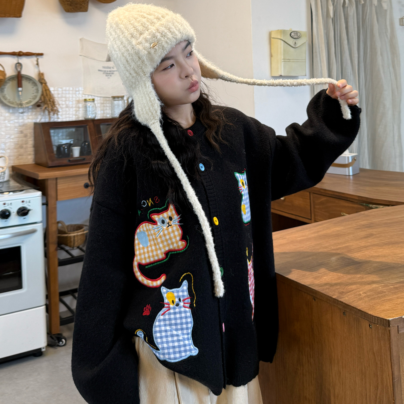 大码女装2025秋季新款胖mm韩版宽松甜美重工刺绣开衫针织毛衣外套