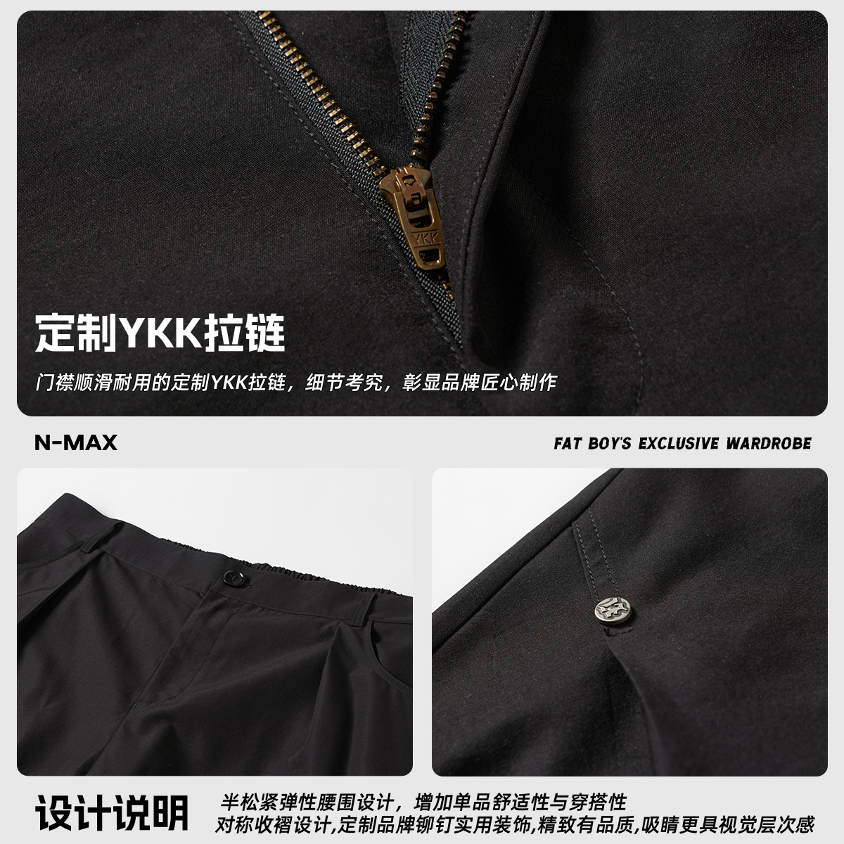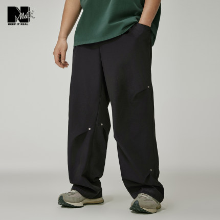 NMAX大码潮牌男装夏季新款半松紧纯色休闲裤收褶设计潮感长裤