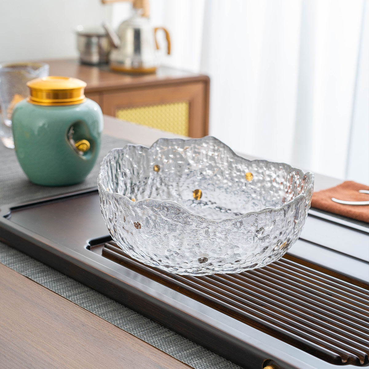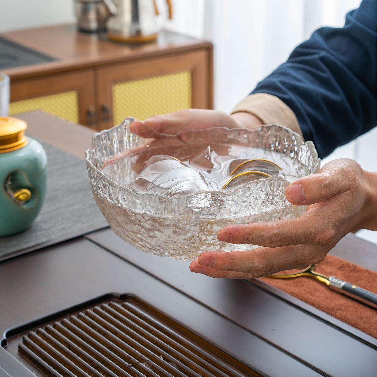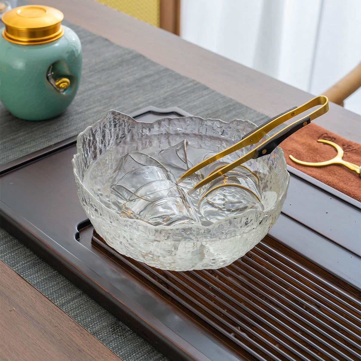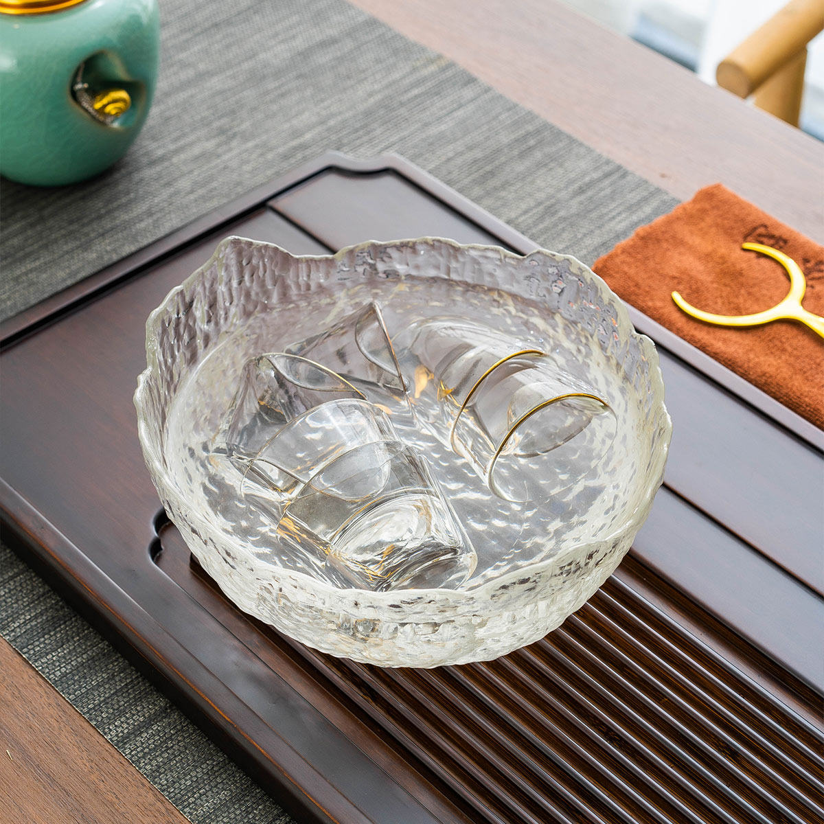 茶洗锤纹玻璃水洗大号功夫茶具配件水盂加厚水洗笔洗水培花盆杯洗