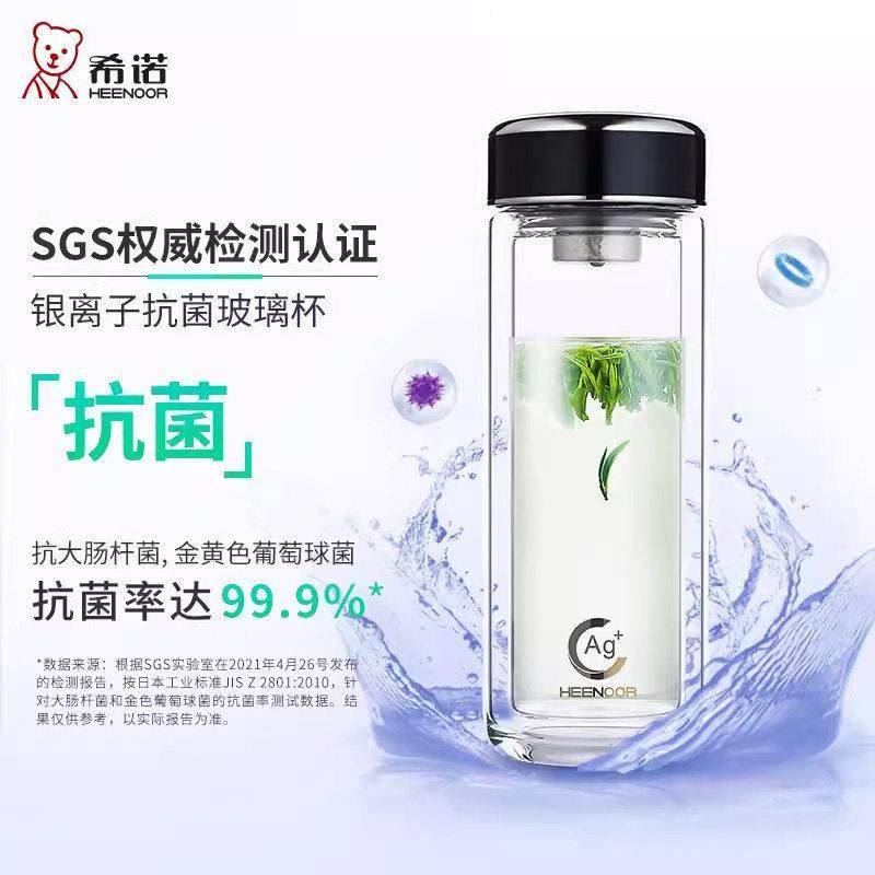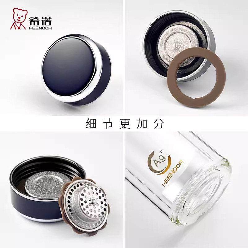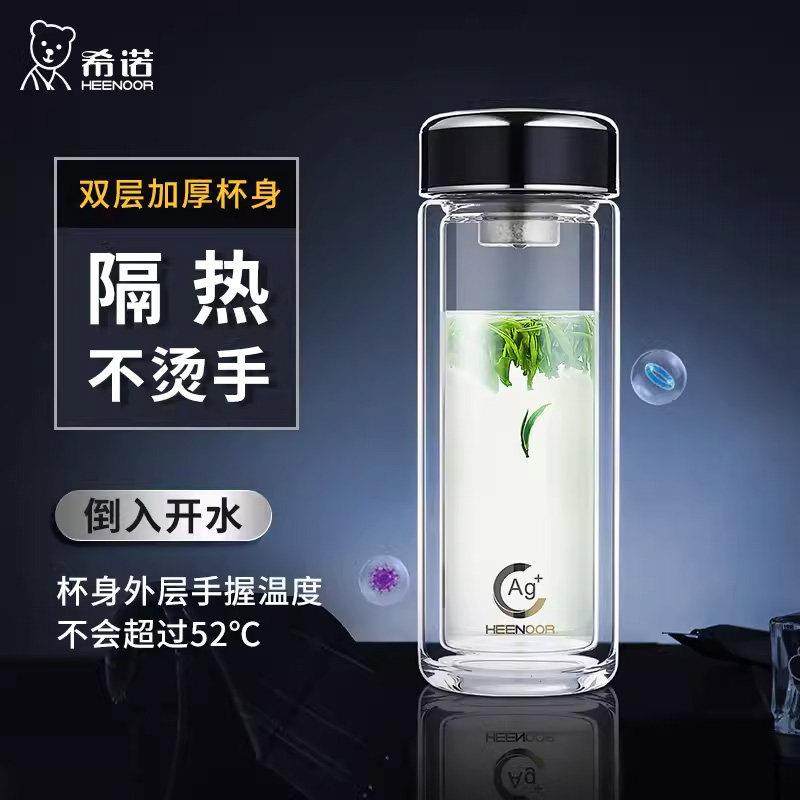希诺纳米抗菌双层玻璃杯纯钛滤网大容量男女家用办公茶水杯XN1902