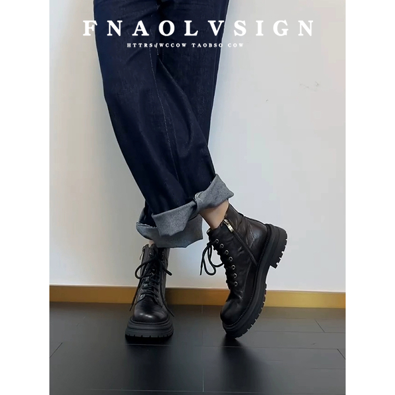 牛皮版~复古系带机车靴厚底马丁靴女春秋单靴英伦风靴子粗跟短靴