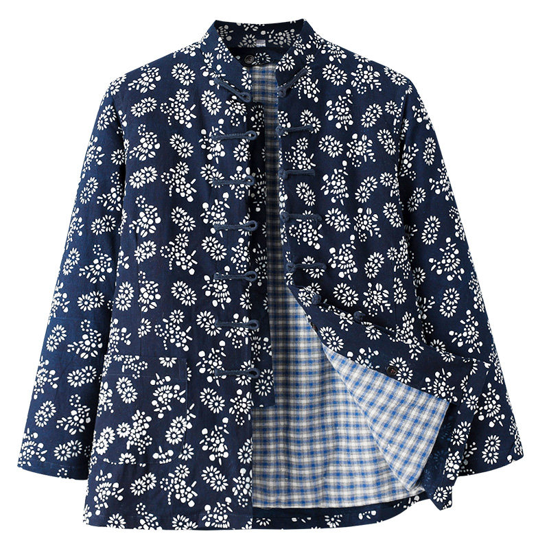 妈妈纯棉中国风立领盘扣棉花棉袄