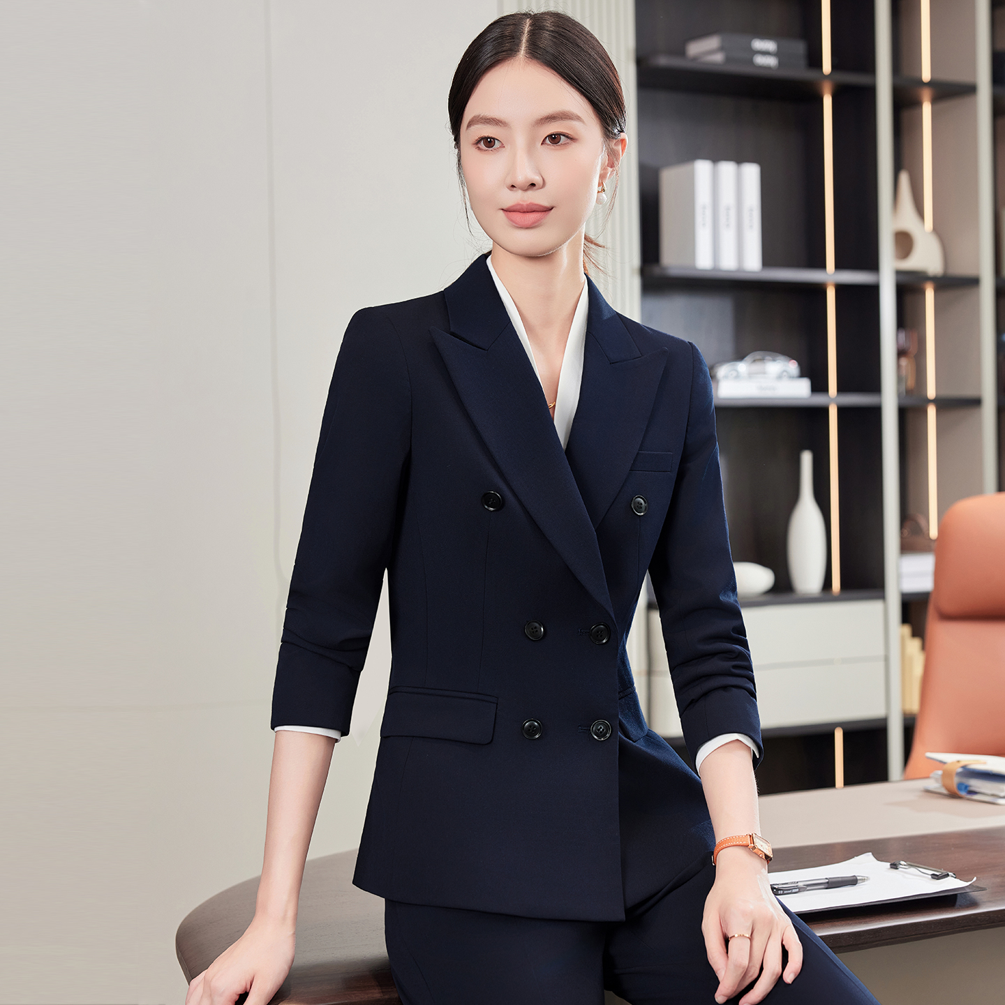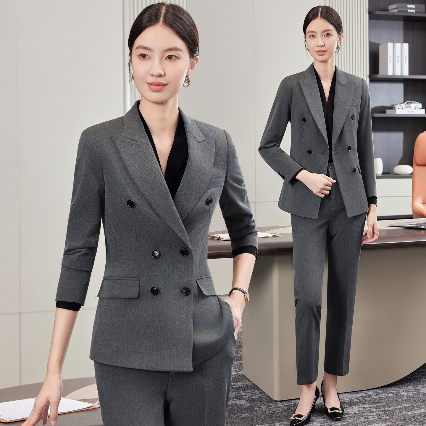 高端西装套装女士春秋教师面试职业装双排扣公务员正装酒店工作服