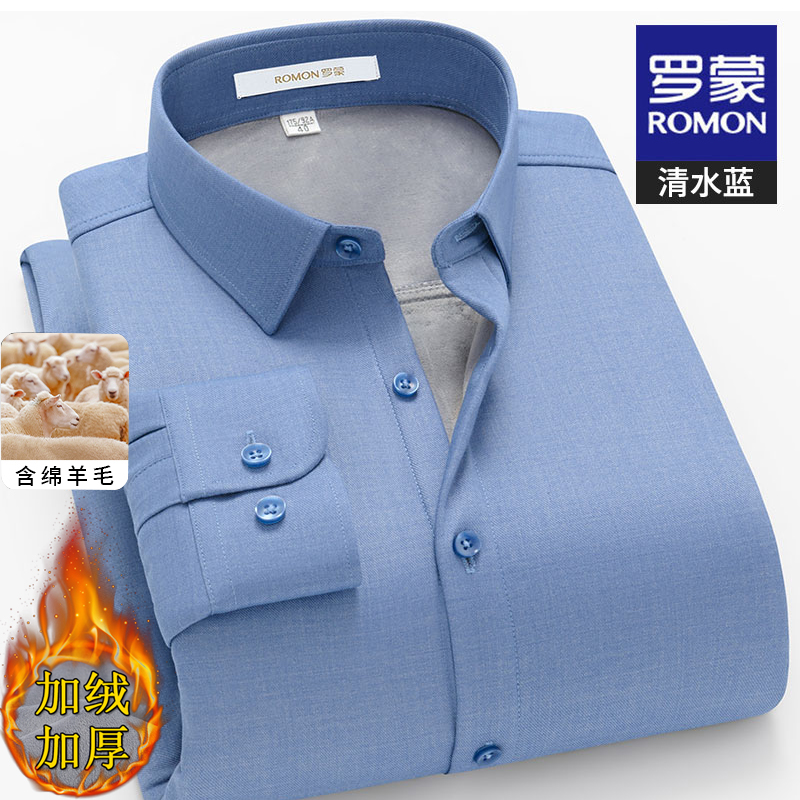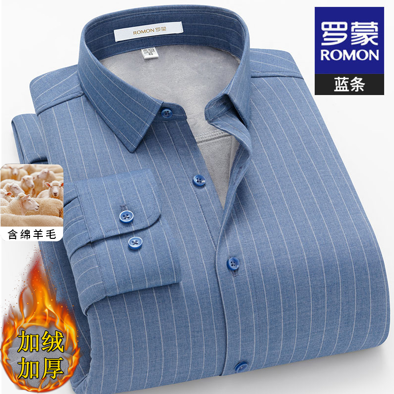 【含绵羊毛】罗蒙男士条纹长袖衬衫冬季新款加绒加厚商务保暖衬衣