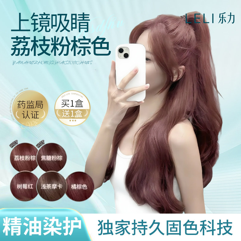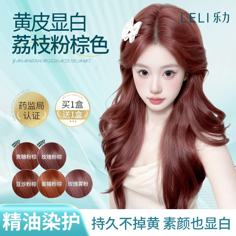 乐力荔枝粉棕色染发膏植物纯正品焦糖玫瑰粉棕2026流行色染发剂女