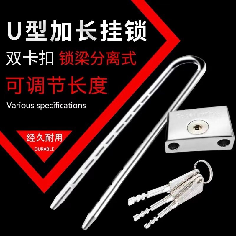 U型锁玻璃门锁柜门拉手挂锁推拉门长锁商铺门插锁头双门防盗锁具