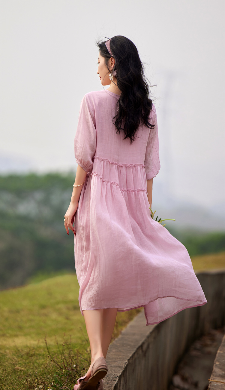 高级感白色苎麻连衣裙夏季薄款文艺宽松孕妇遮肚显瘦大摆飘逸棉麻