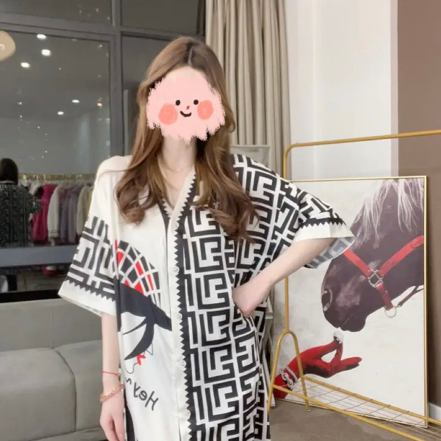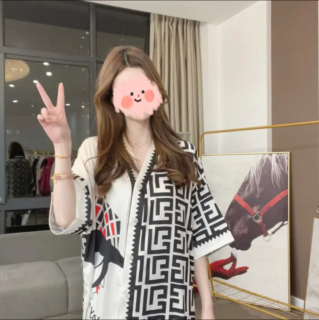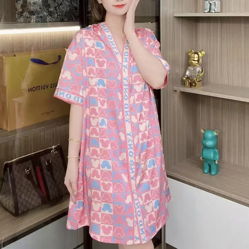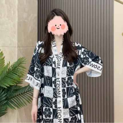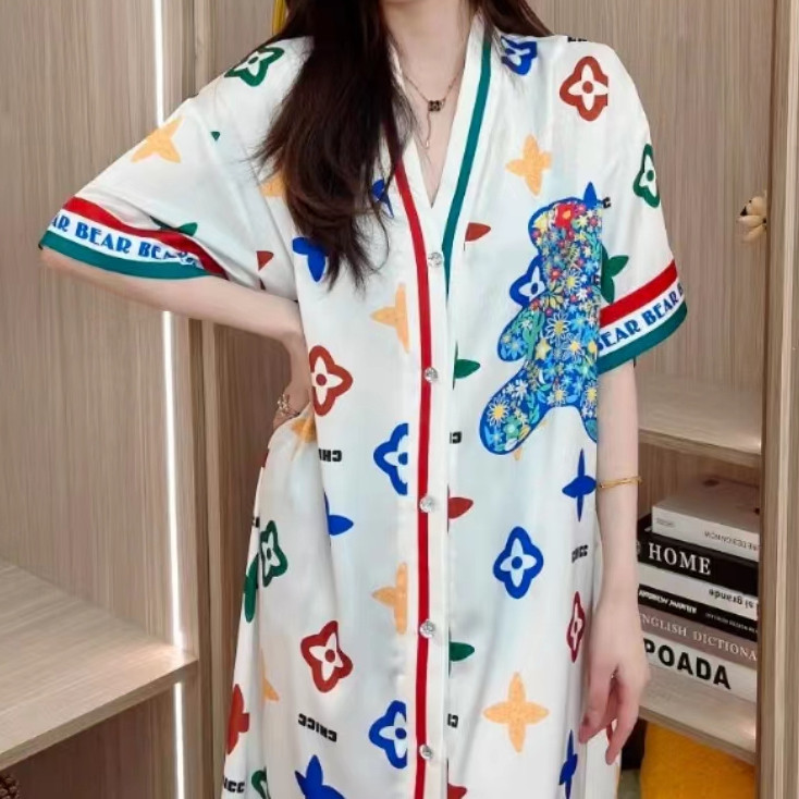 春夏季冰雪丝衬衫v领大码睡裙女