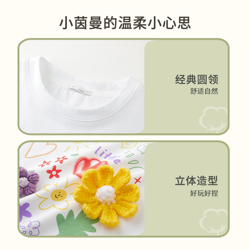 茵曼童装女大童立体印花短袖T恤