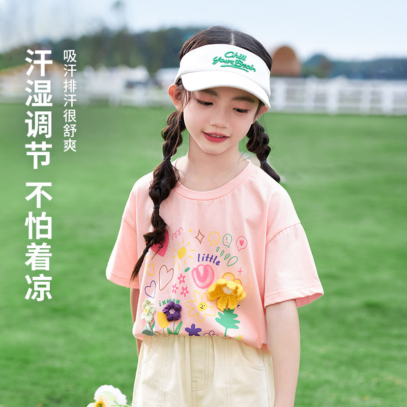 茵曼童装女童纯棉短袖t恤2025夏季儿童中大童立体花洋气半袖上衣