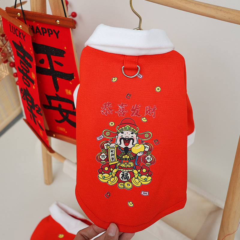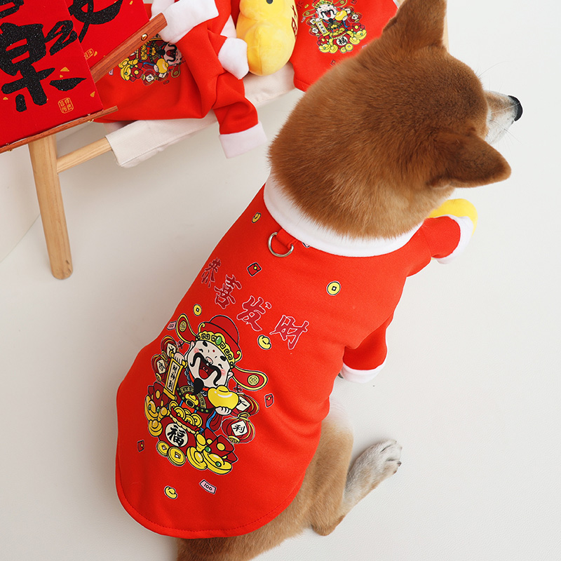 可牵引衣服+发声玩具元宝新年过年泰迪比熊博美宠物狗猫衣服秋冬