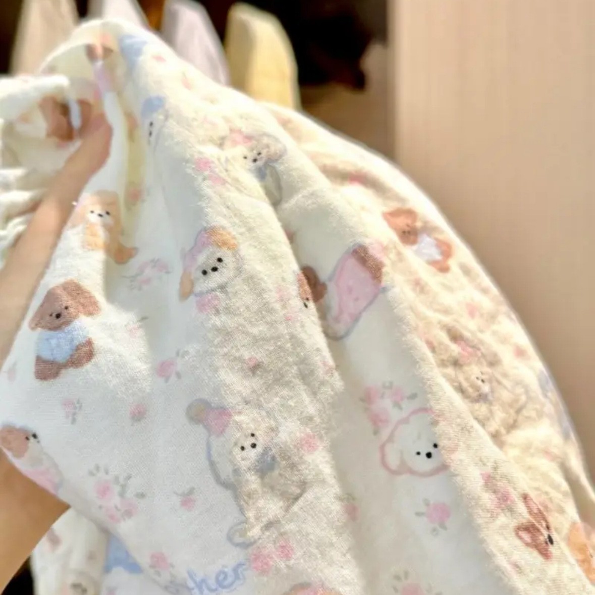 侘町2025新款A类全棉双层纱睡裙睡衣纯棉卡通可爱少女短袖家居服