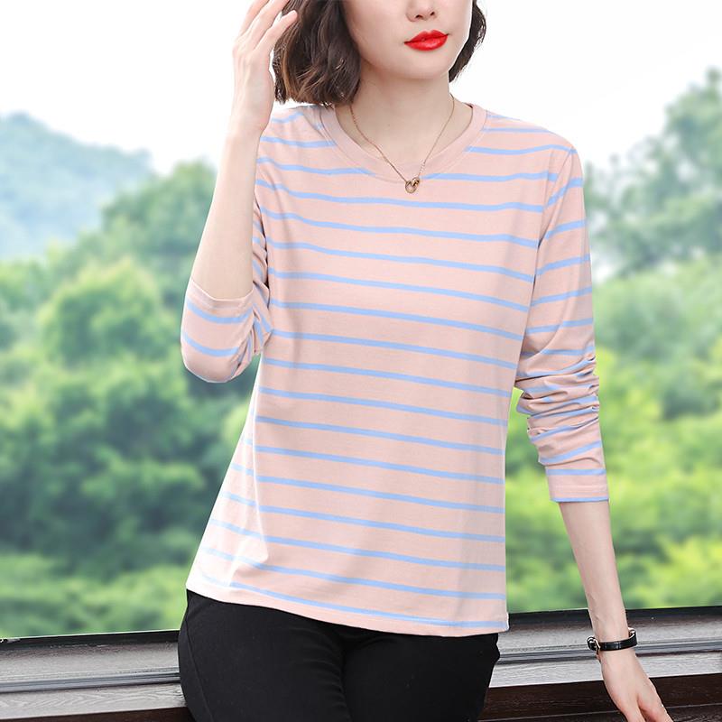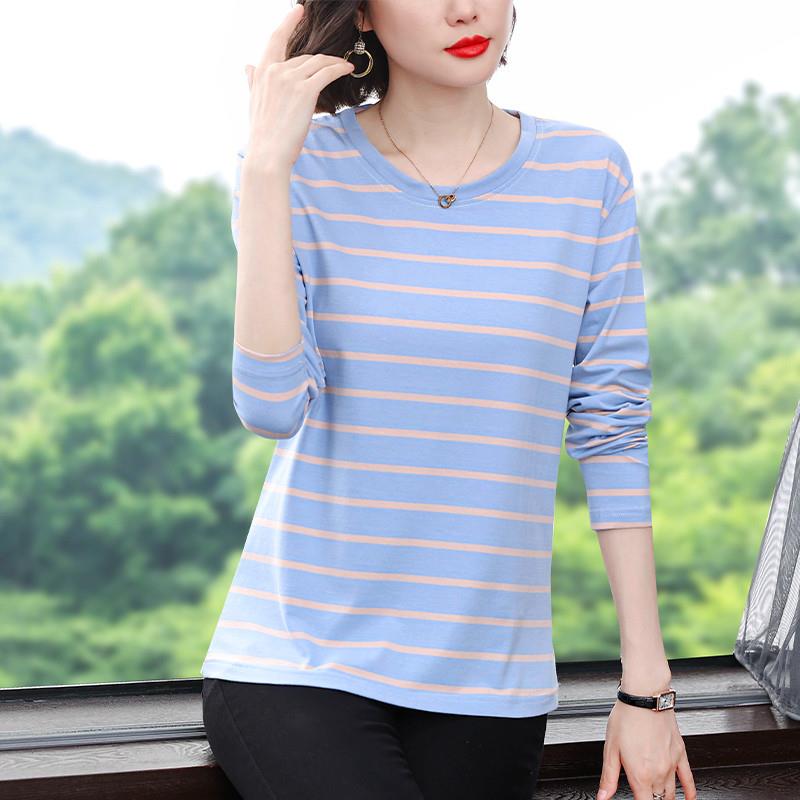 2025秋冬新款韩版纯棉条纹长袖t恤女打底衫2025春秋中老年妈妈装