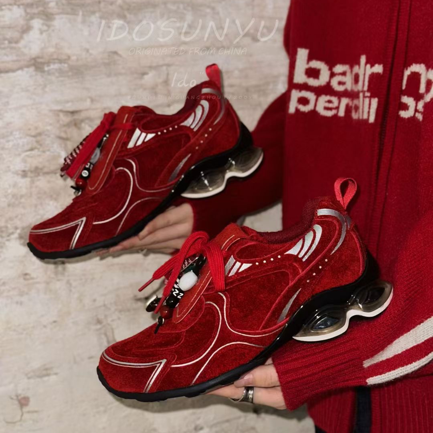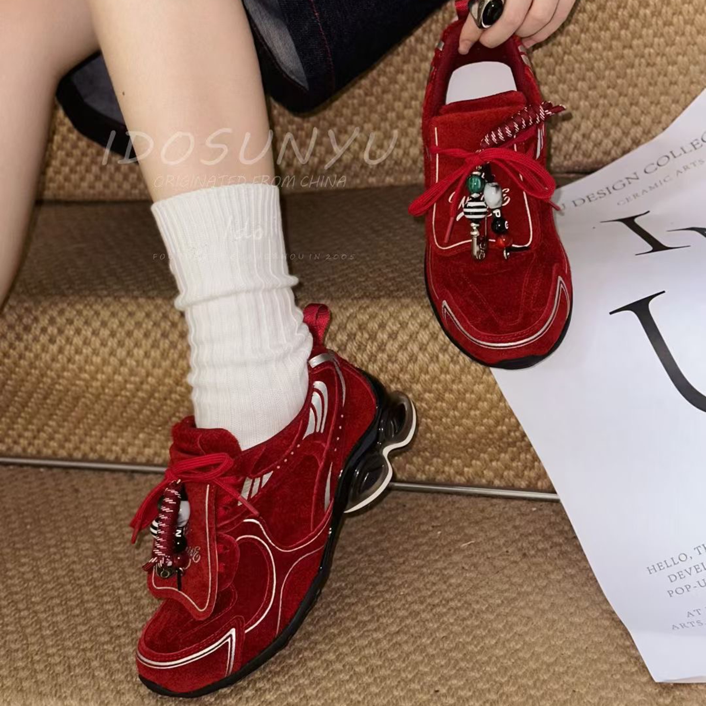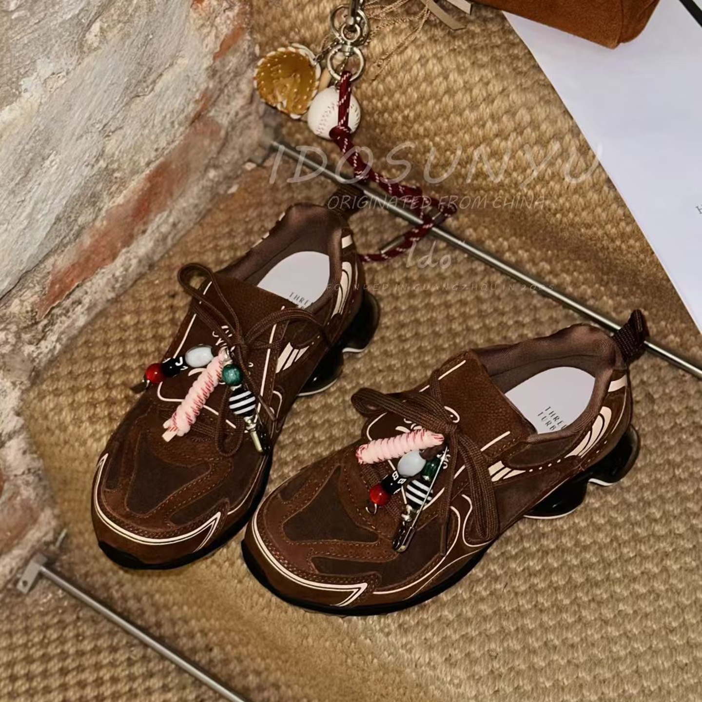 IDO/TT欧货女鞋2025秋冬新款牛猄拼色圆头翻盖系带气垫厚底休闲鞋
