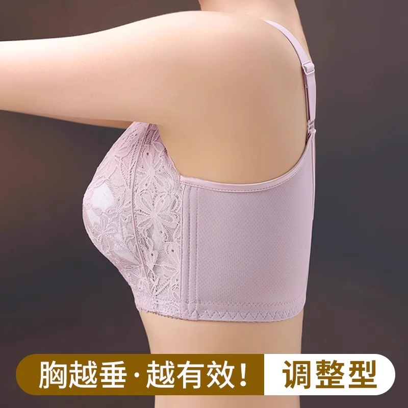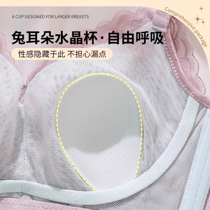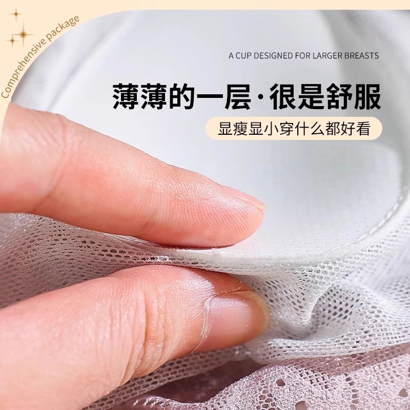 新品款文胸罩超薄性感蕾丝防凸点内衣女大胸显小防下垂调整型夏季