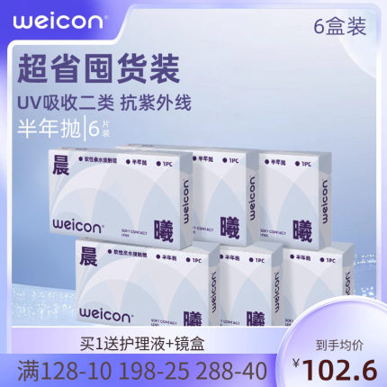 卫康隐形近视眼镜晨曦半年抛1片6盒近视高清透明囤货装