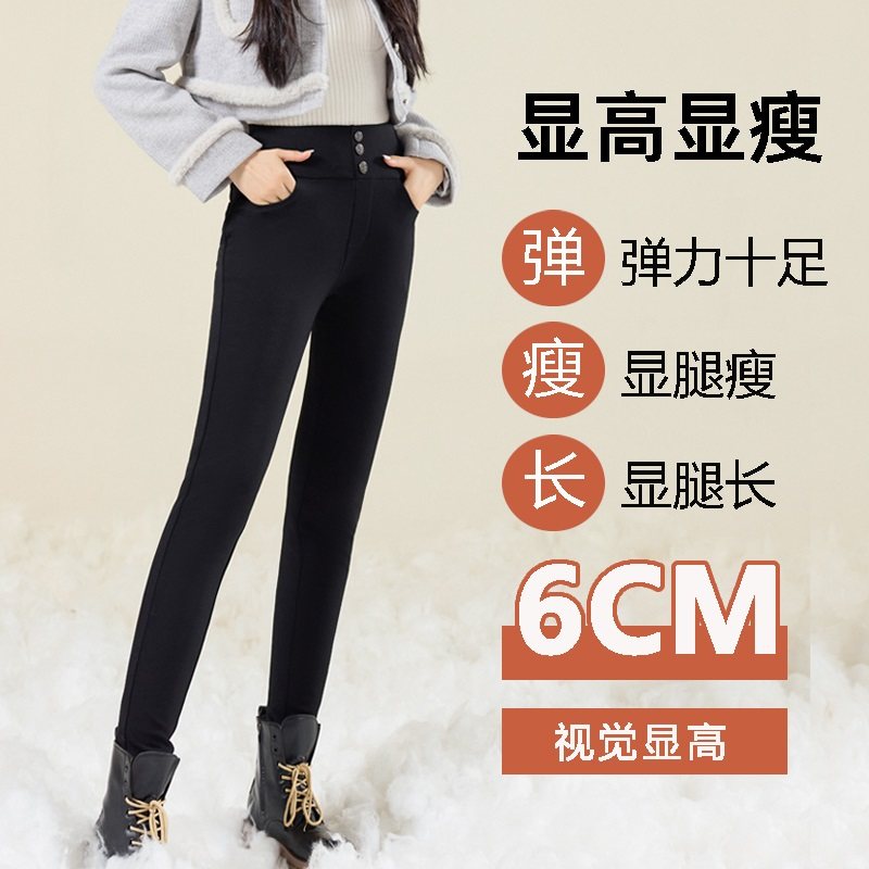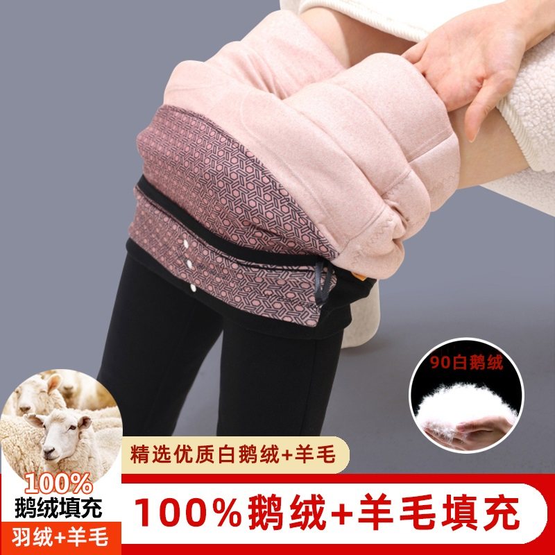 2025秋冬新款加厚保暖羽绒裤女高腰显瘦黑色打底裤外穿小脚裤羊毛