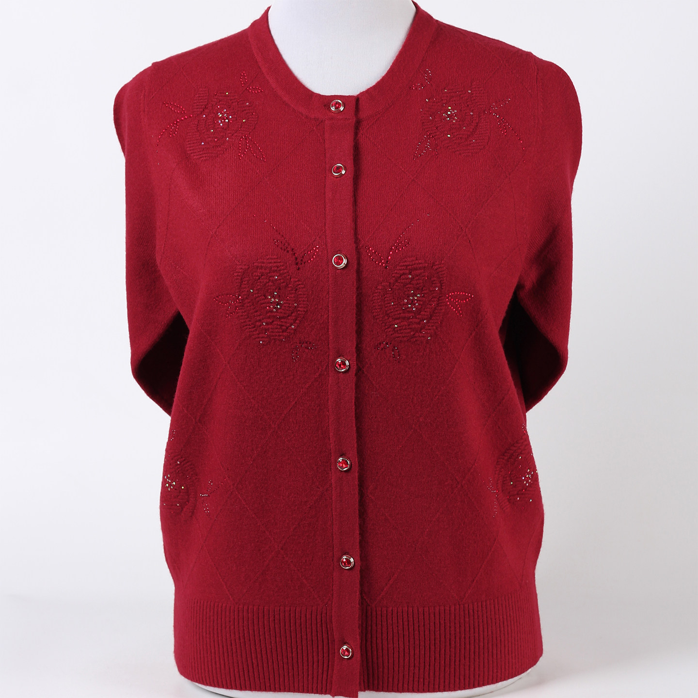 妈妈装毛衣开衫薄款洋气纯色圆领