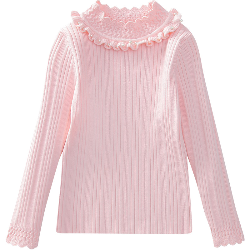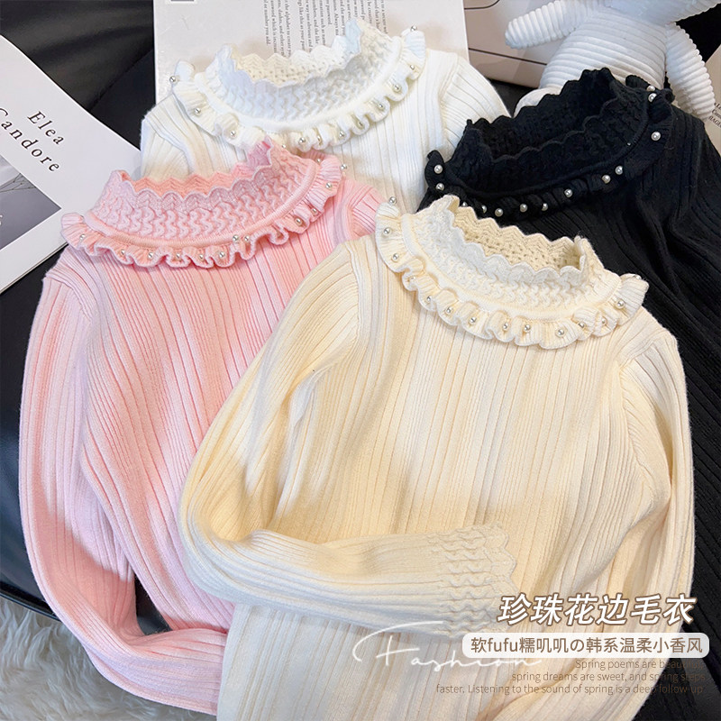 女童毛衣冬装2025新款洋气儿童花边领针织打底衫女孩韩版内搭上衣