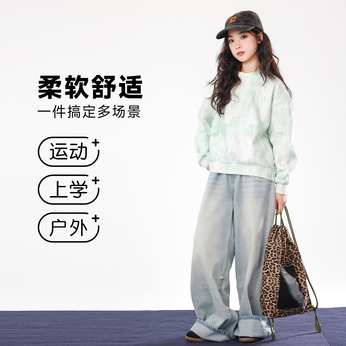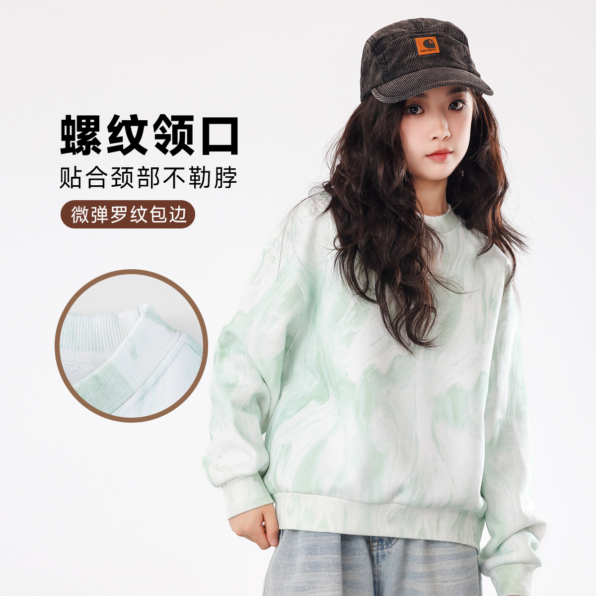 2025秋冬新款女童洋气圆领卫衣中大童女孩加绒保暖上衣儿童潮童装