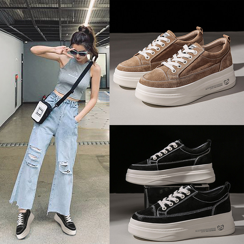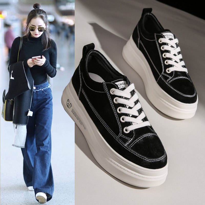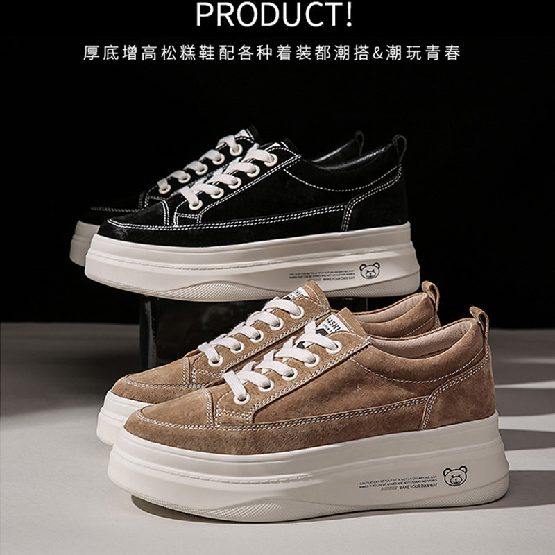 明星同款百搭松糕2026春秋新款鞋子板鞋厚底真皮透气潮鞋女鞋增高