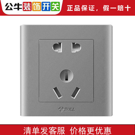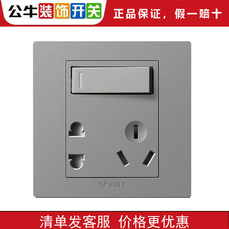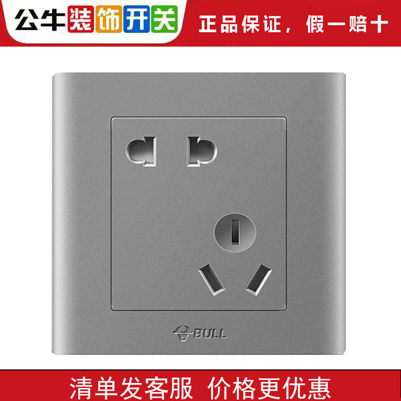 公牛开关G32插座星空灰面板二三插座斜五孔多孔灰插座