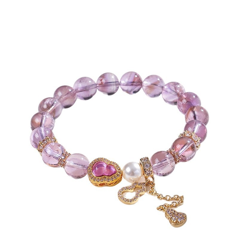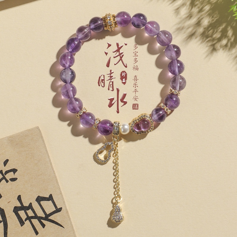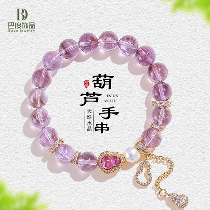 天然玻利维亚紫水晶葫芦串珠手链女时尚通勤淡水珍珠粉水晶手串