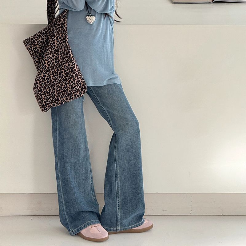 女童显瘦显高牛仔长裤儿童春秋季韩版洋气喇叭裤中大童百搭休闲裤