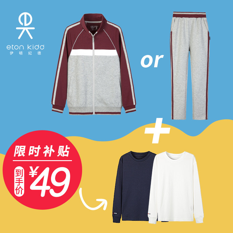 伊顿纪德校服撞色拼条运动套装男女童学院运动外套收脚长裤18Y055