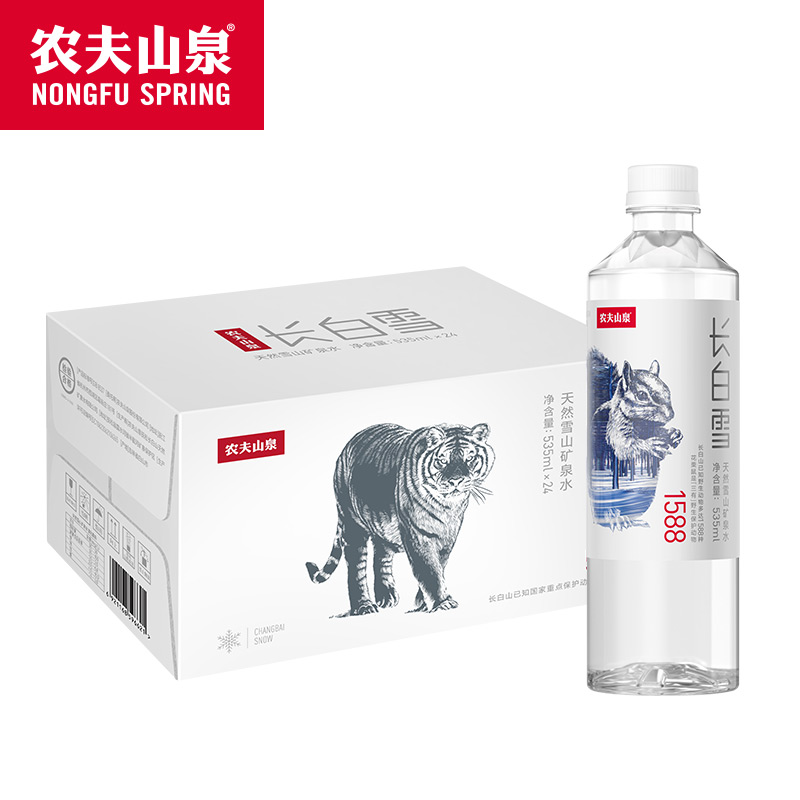 农夫山泉长白雪天然雪山矿泉水535ml*24瓶整箱装饮用水350小瓶装