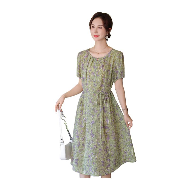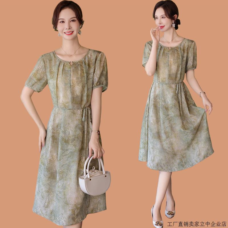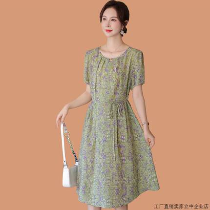 年轻妈妈连衣裙夏装2025新款中年女装端庄大气中老年短袖雪纺裙子