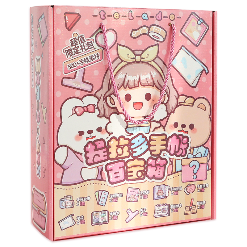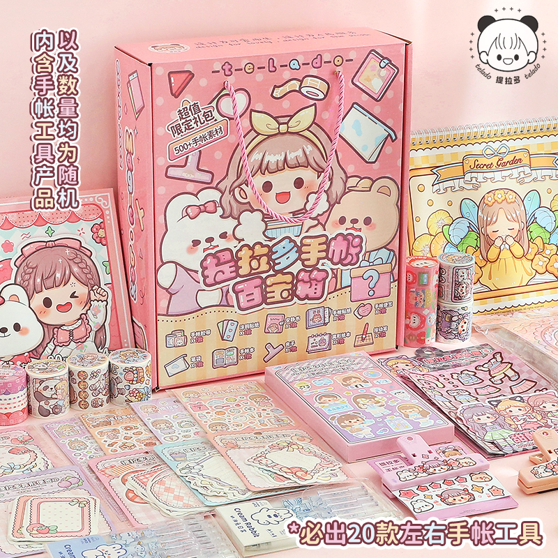 提拉多手帐百宝箱手帐礼盒可爱胶带贴纸diy手账礼盒套装创意幸运大盲盒福袋手杖文具超值礼包素材小学生礼物