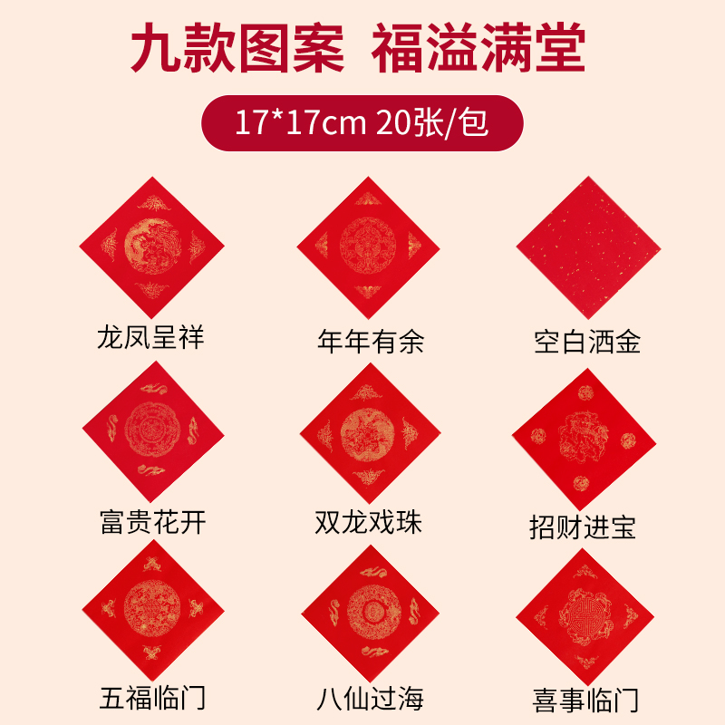 六品堂万年红迷你斗方小号手写对联春字纸写对联专用纸半生熟宣纸加厚大红拼接春联纸红纸空白书法写字福字纸