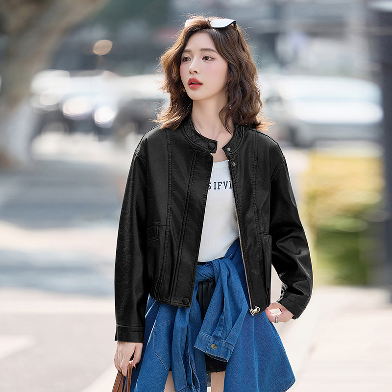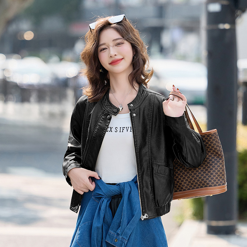 PU皮衣外套女中长款2025年春秋新款时尚宽松气质休闲机车夹克上衣