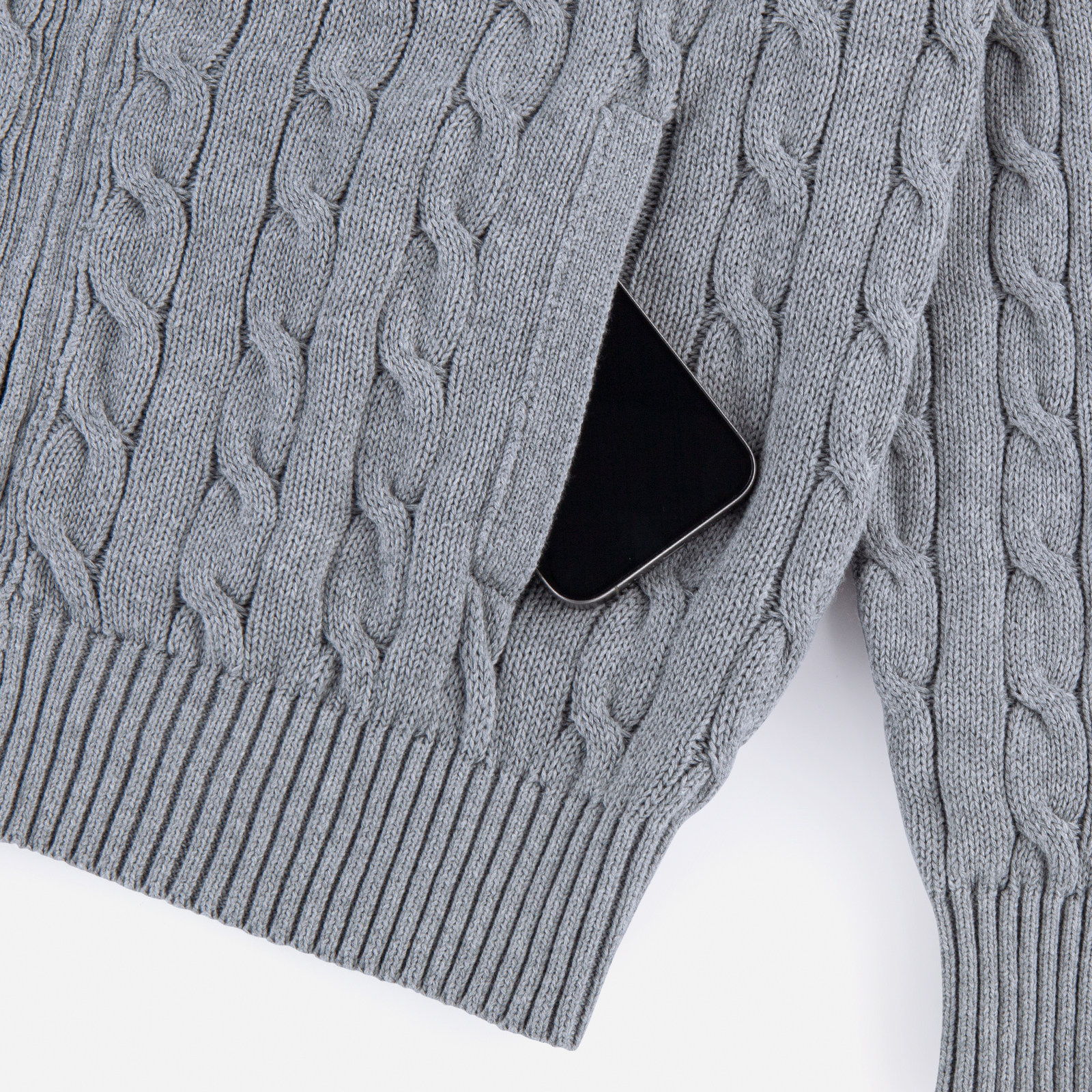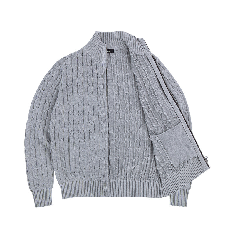 IDLT 正肩 绞花针织拉链开衫合身外套纯棉毛衣男女美式复古老钱风