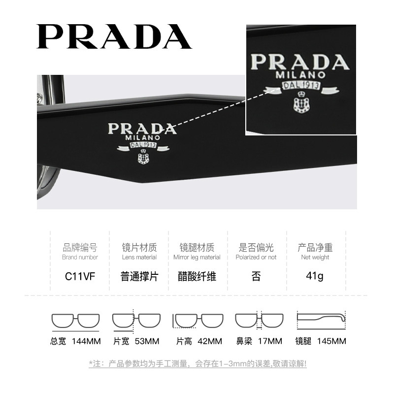 PRADA普拉达眼镜框男女休闲方框素颜光学镜可配度数镜架0PR C11VF